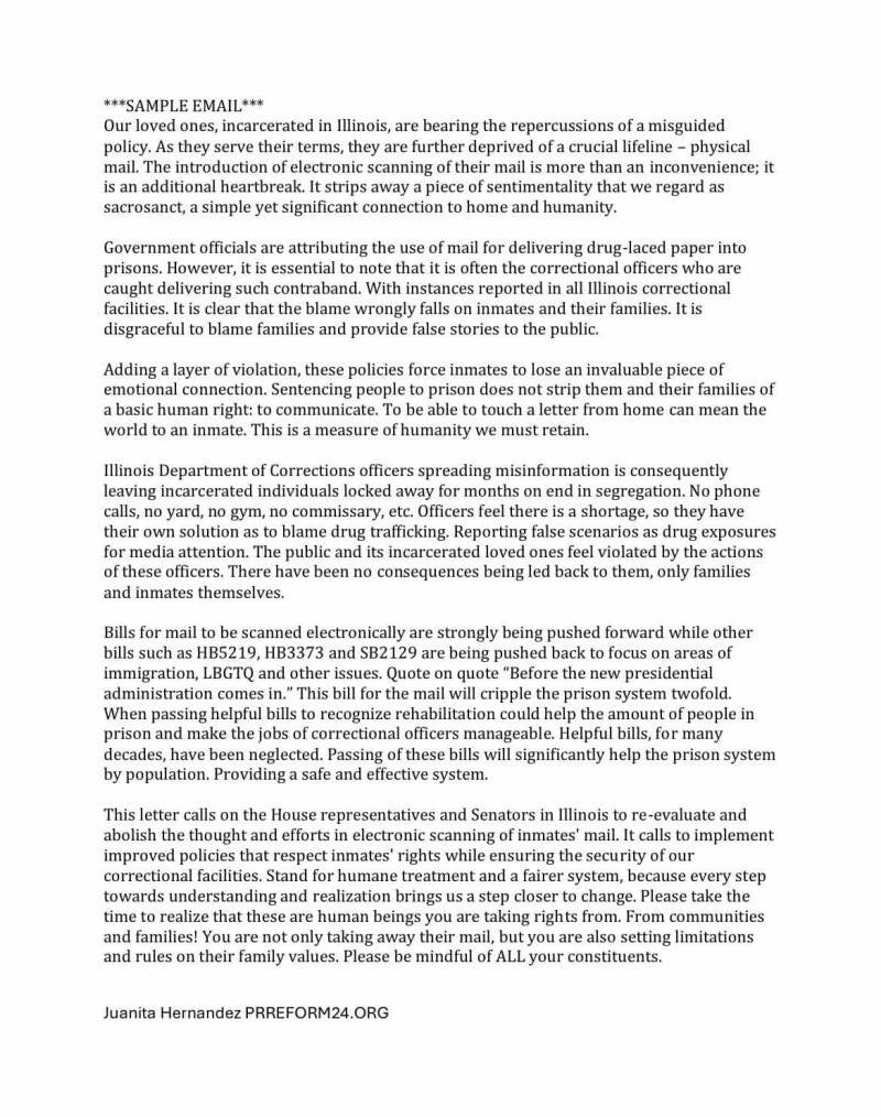 Sample email written by Juanita and Enrique Hernandez
